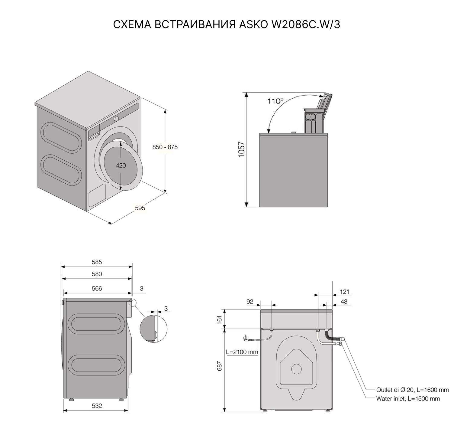 - Длину сливных и водяных шлангов (в комплекте ASKO идут шланги длиной 1,5 м).