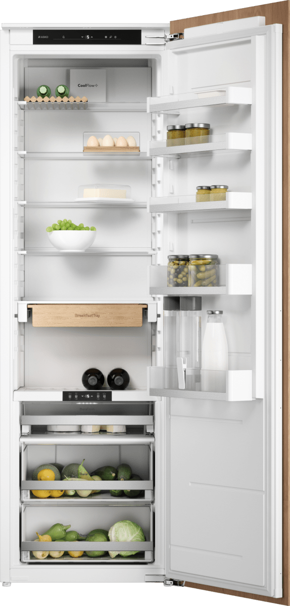 Встраиваемый холодильник Asko R31831I: премиальный дизайн, объем 301 л, адаптивный контроль. | Встраиваемый холодильник Asko R31842i общим объемом 300 л. Ключевая особенность модели — контейнеры Dura Fresh с независимой регулировкой температуры. |