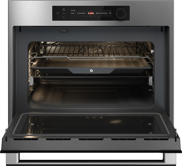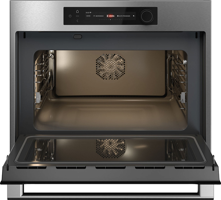 Элегантный электрический духовой шкаф ASKO сочетает в себе возможности традиционной духовки и СВЧ-печи, обеспечивая скорость, точность и идеальный результат приготовления.