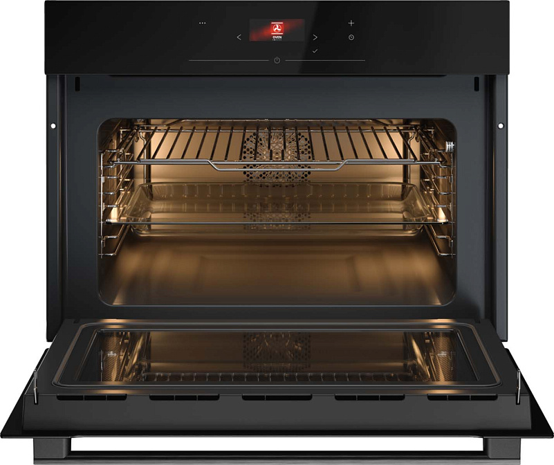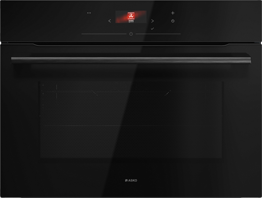 Элегантный электрический духовой шкаф ASKO сочетает технологии профессионального уровня и изысканный дизайн в отделке черного стекла. Компактная модель высотой 45 см и объемом 51 литр обеспечивает функциональность полноразмерной духовки при экономии пространства.